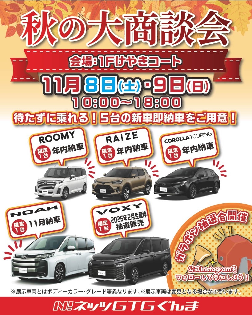ネッツGTGぐんまでは恒例の秋の大商談会をけやきウォーク前橋にて開催します🎊