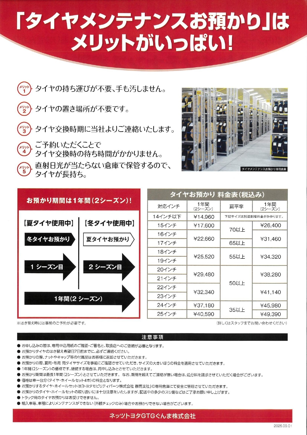 タイヤ履き替え作業の混雑緩和のため