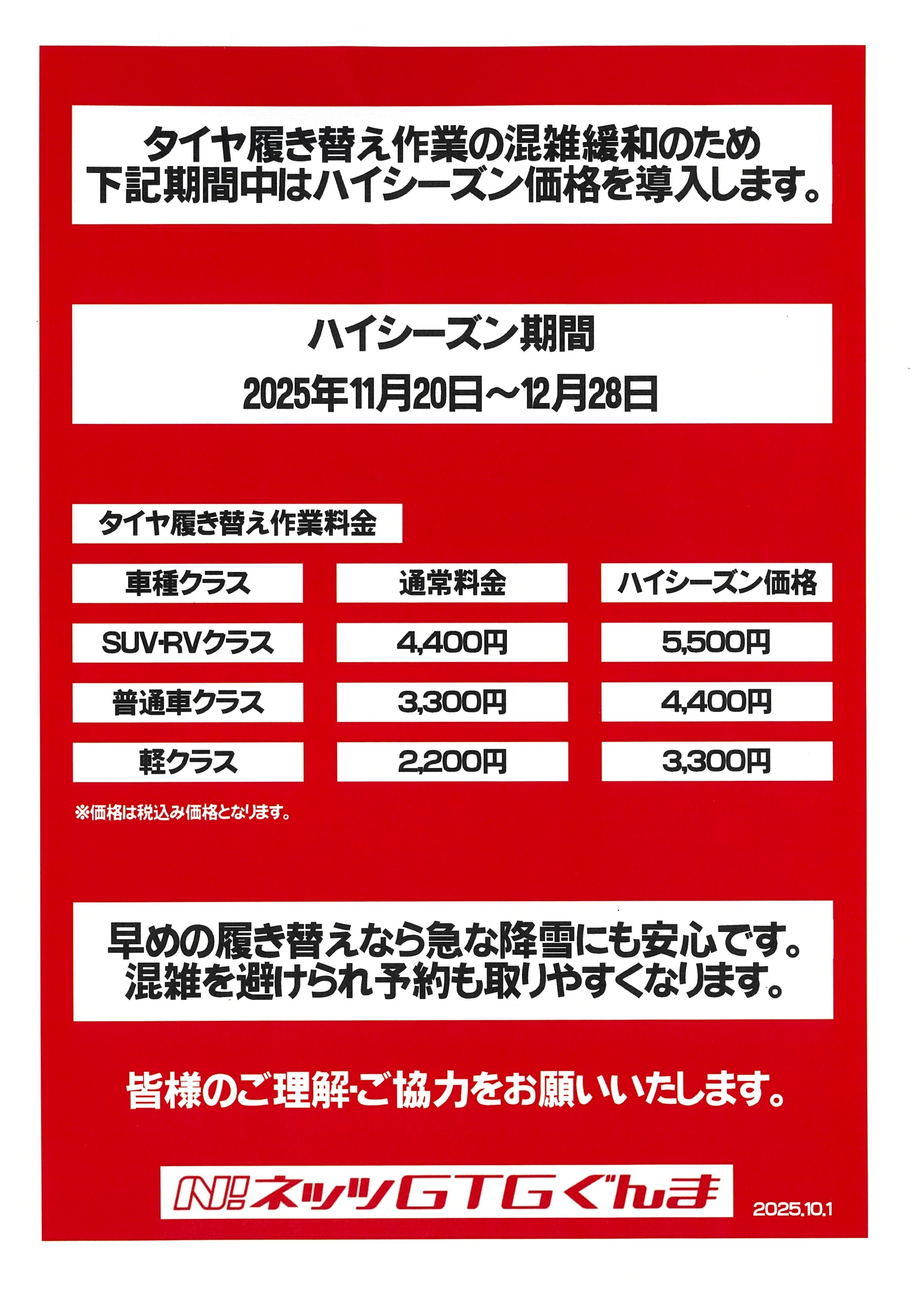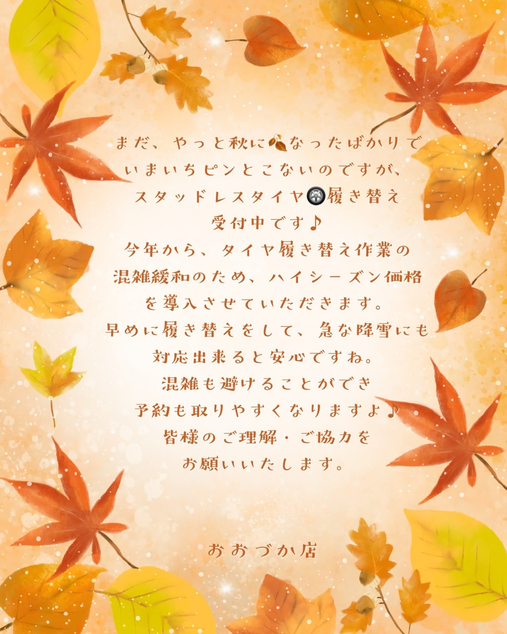 🚗🚘🚙スタッドレスタイヤ履き替え受付中です♪⛄⛄⛄