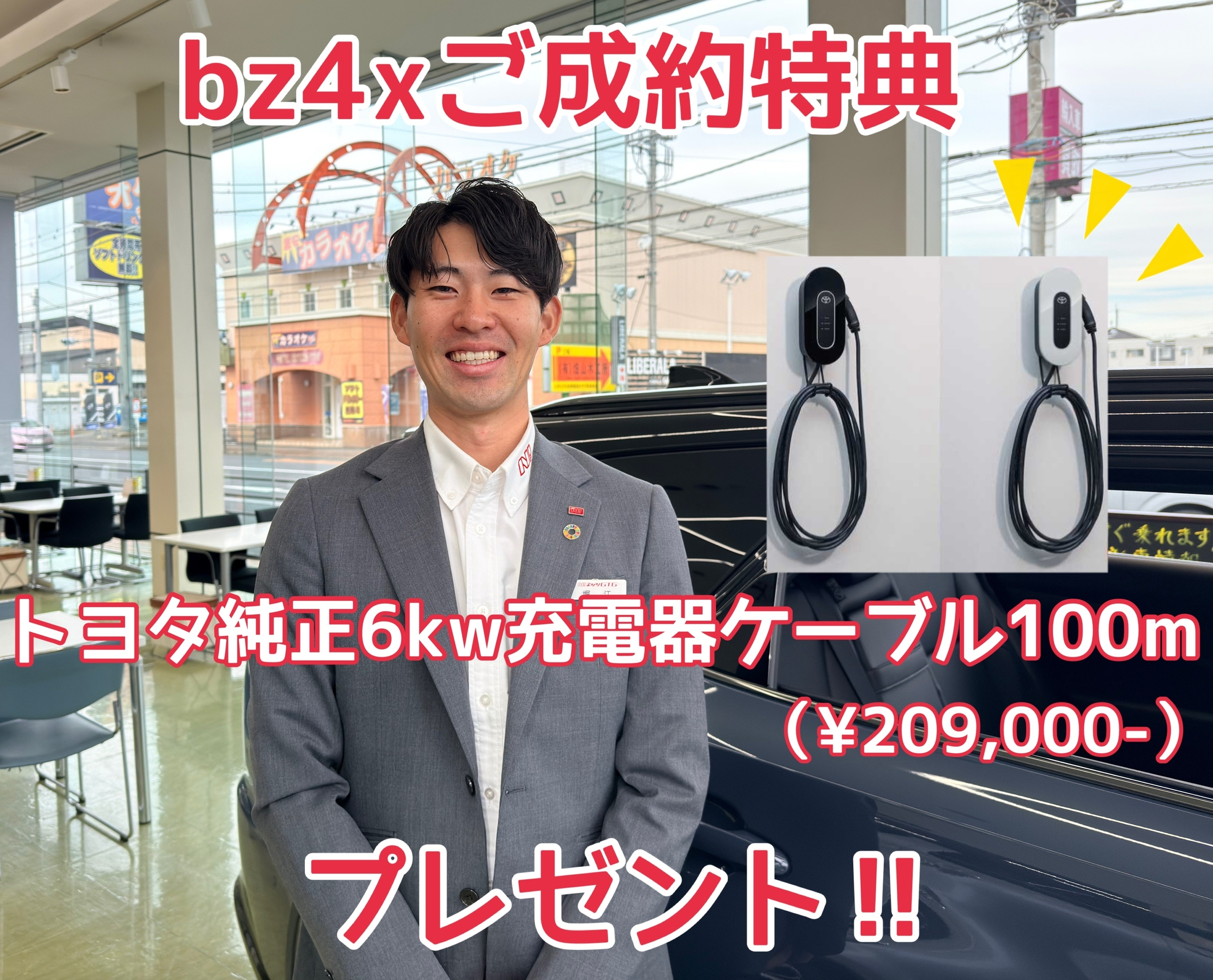 2026年3月31日まで.ᐟbz4xご成約でトヨタ純正充電器🔌TOYOTA wallet QUICPay 残高10万円プレゼント🎁✨