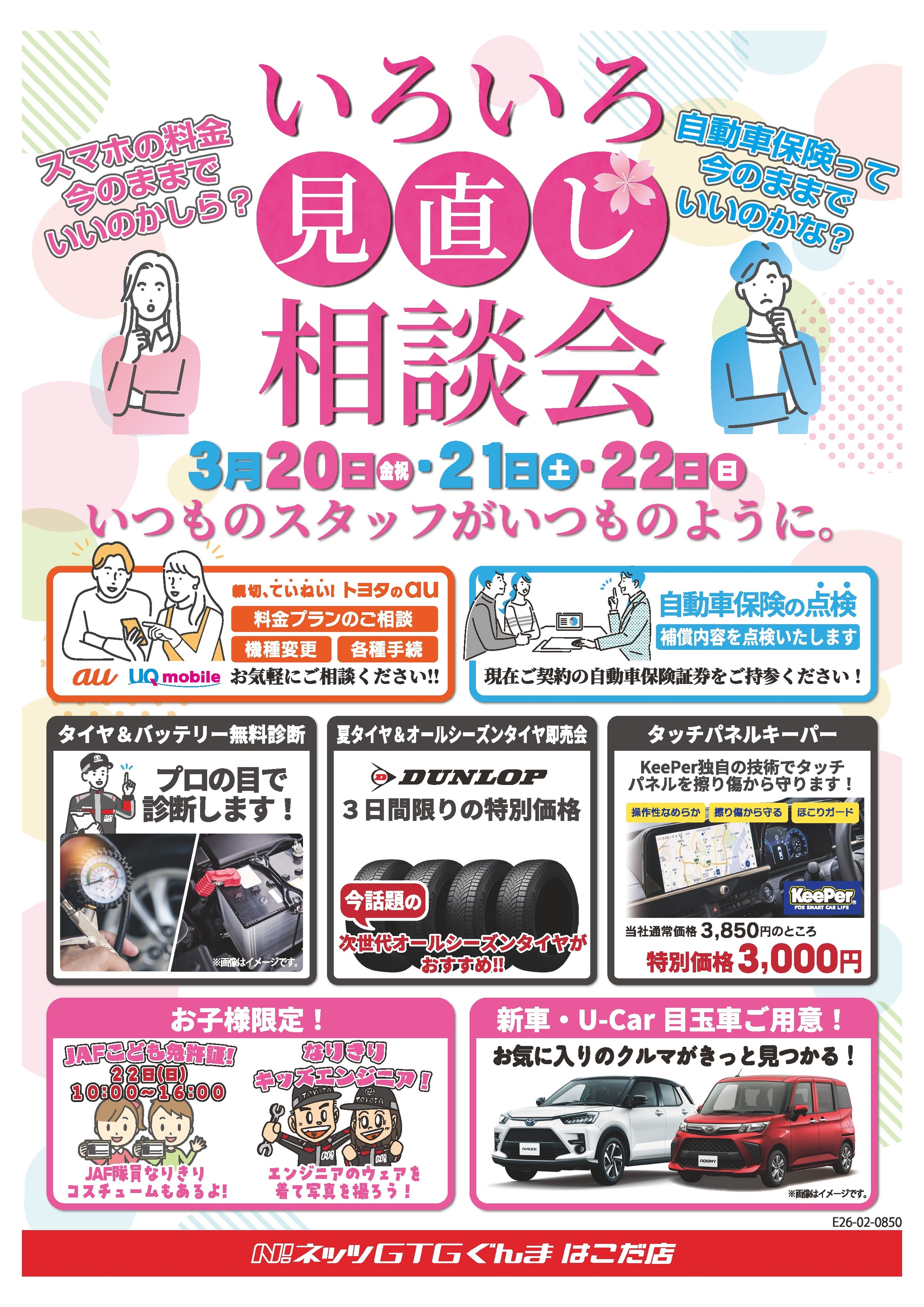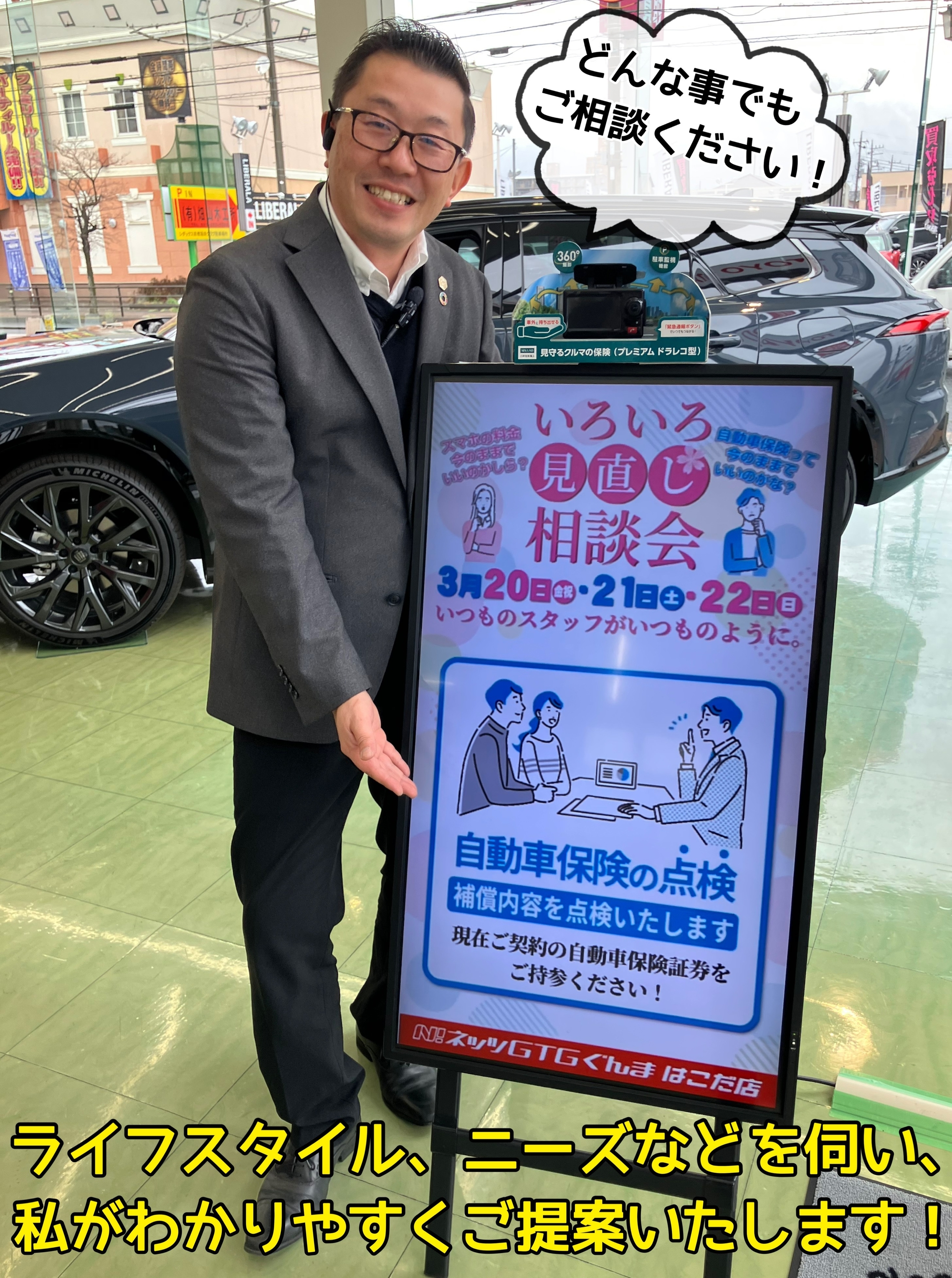 はこだ店特別企画❢3月20㊎、21㊏、22㊐いろいろ見直し相談会✧*。自動車保険証券の点検✧*。