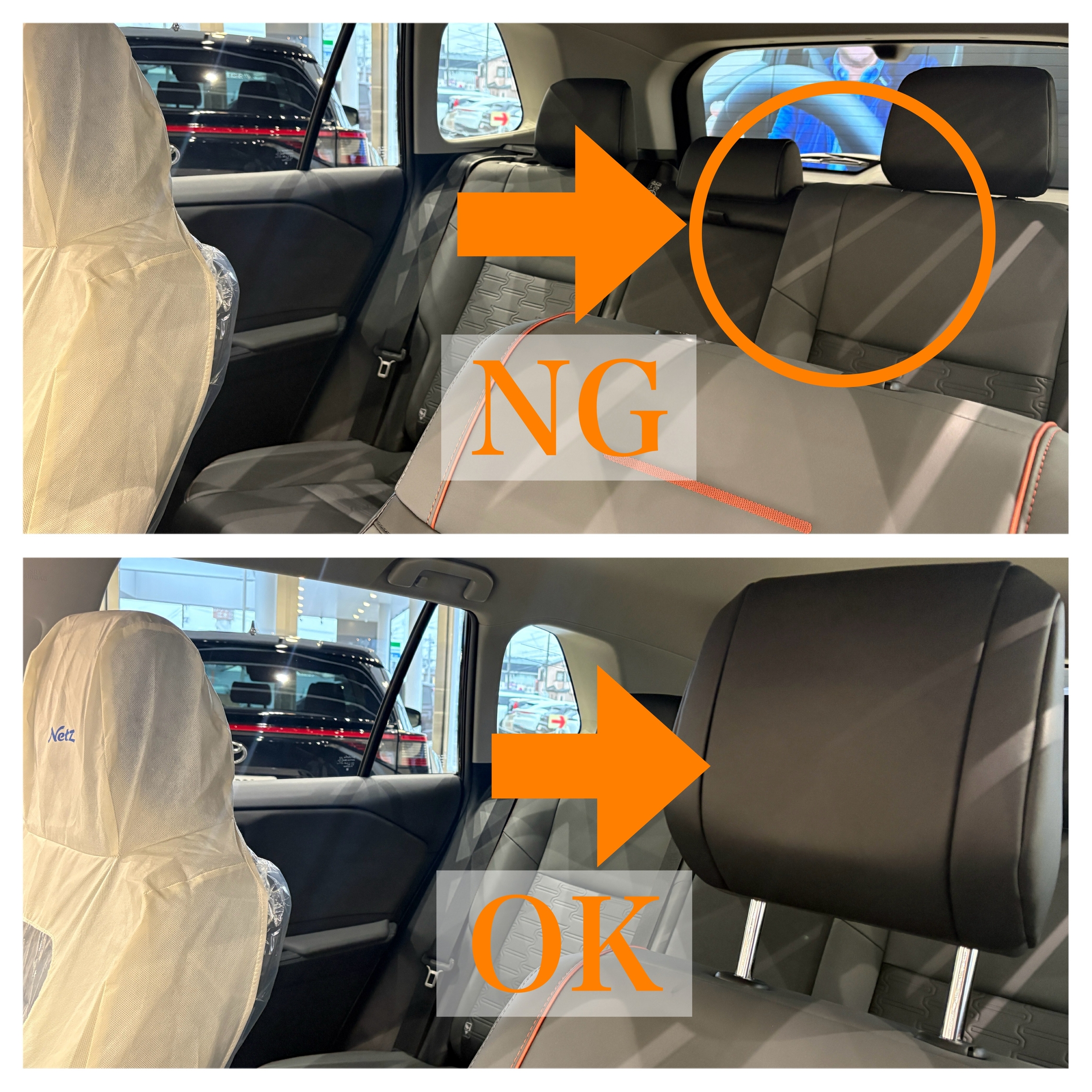 ヘッドレストの座席ごとの取り付け義務が異なるので注意しましょう。