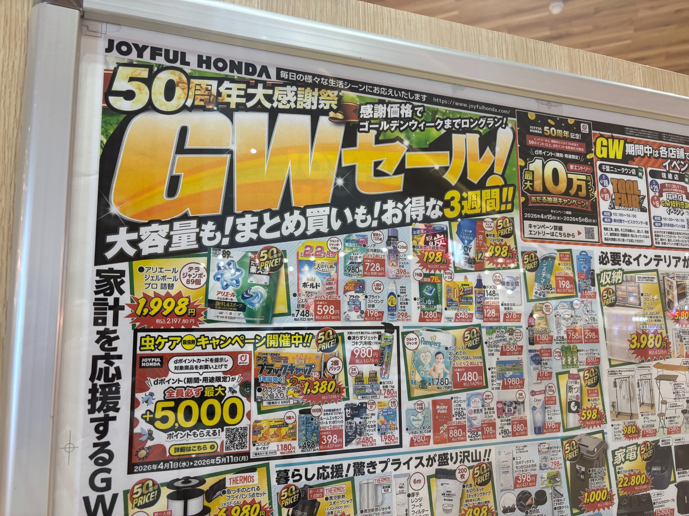 ジョイフルホンダ様だけでなくテナント各店、様々なGWセールを開催しています。