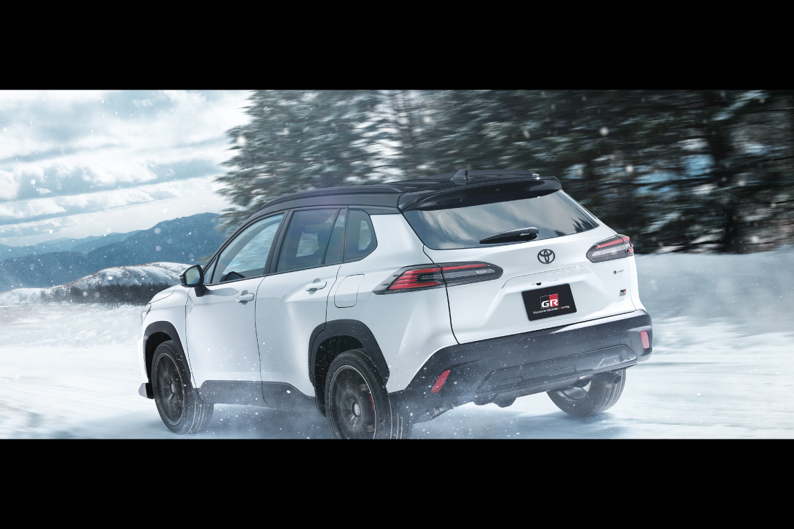■写真はGR SPORT。ボディカラーのブラック〈202〉×プラチナホワイトパールマイカ〈089〉[2VP]、ブレーキキャリパー、LEDリヤフォグランプ、アダプティブハイビームシステム、デジタルキー、ナノイーX、アクセサリーコンセント、ハンズフリーパワーバックドアはメーカーオプション。トヨタ チームメイト[アドバンスト パーク]+パーキングサポートブレーキ(周囲静止物)、ブラインドスポットモニター+安心降車アシスト、パーキングサポートブレーキ(後方接近車両+後方歩行者)、パノラミックビューモニターはセットでメーカーオプション。 ■雪道の走行時にはチェーンまたは冬用タイヤを装着してください。また、実際の走行時には、路面の状況に応じたタイヤの選択や、安全に配慮した運転にご留意ください。