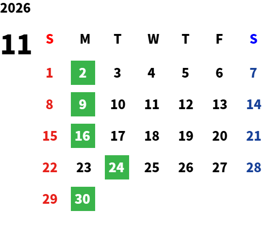 営業日カレンダー