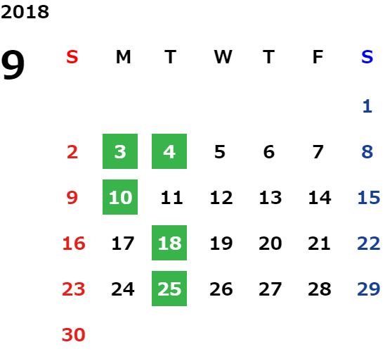 営業日カレンダー